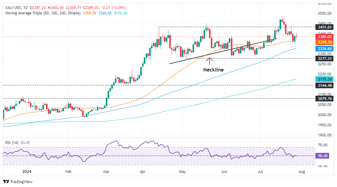 如果XAU/USD买家收回2400美元,这可能会推动价格突破2450美元的心理区间。违反后者将使历史最高点(ATH)达到2483美元左右,其次是2500美元大关。