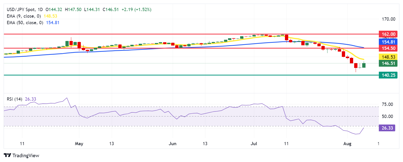 美元/日元价格分析:日元进一步下跌,因日本央行内田在市场不稳定的情况下拒绝加息