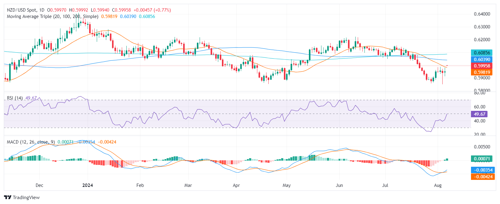 周三,新西兰元/美元继续上涨,升至0.5995,接近0.6000的水平,这是一个关键的心理水平。随着该货币对在0.5980附近获得20天简单移动平均线(SMA),前景正在好转。