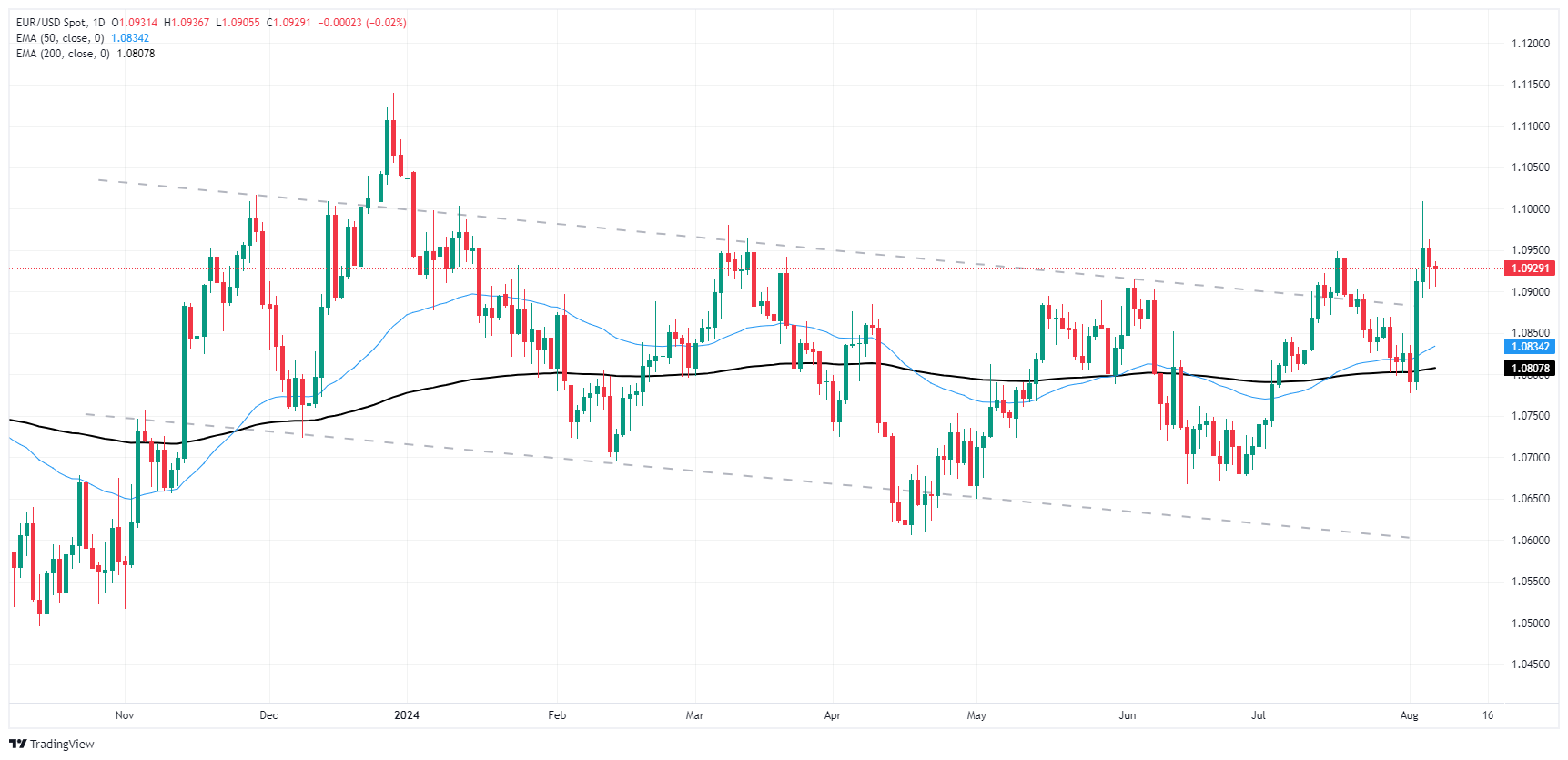 周三,欧元/美元在一个紧密的圆圈中徘徊,略高于1.0900的手柄,因为Fiber交易员从上周美国关键数据印刷错误引发的近期波动中喘息。欧元/美元在1.1000的牛市中表现不佳,使出价悬而未决。
