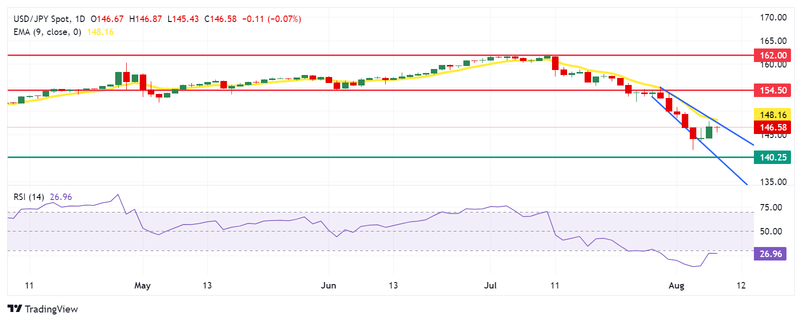 周四,美元/日元的交易价格约为146.50。日线图分析显示,该货币对在下行通道内盘整,表明看跌倾向。此外,14天相对强弱指数(RSI)仍低于30,预示着短期反弹。