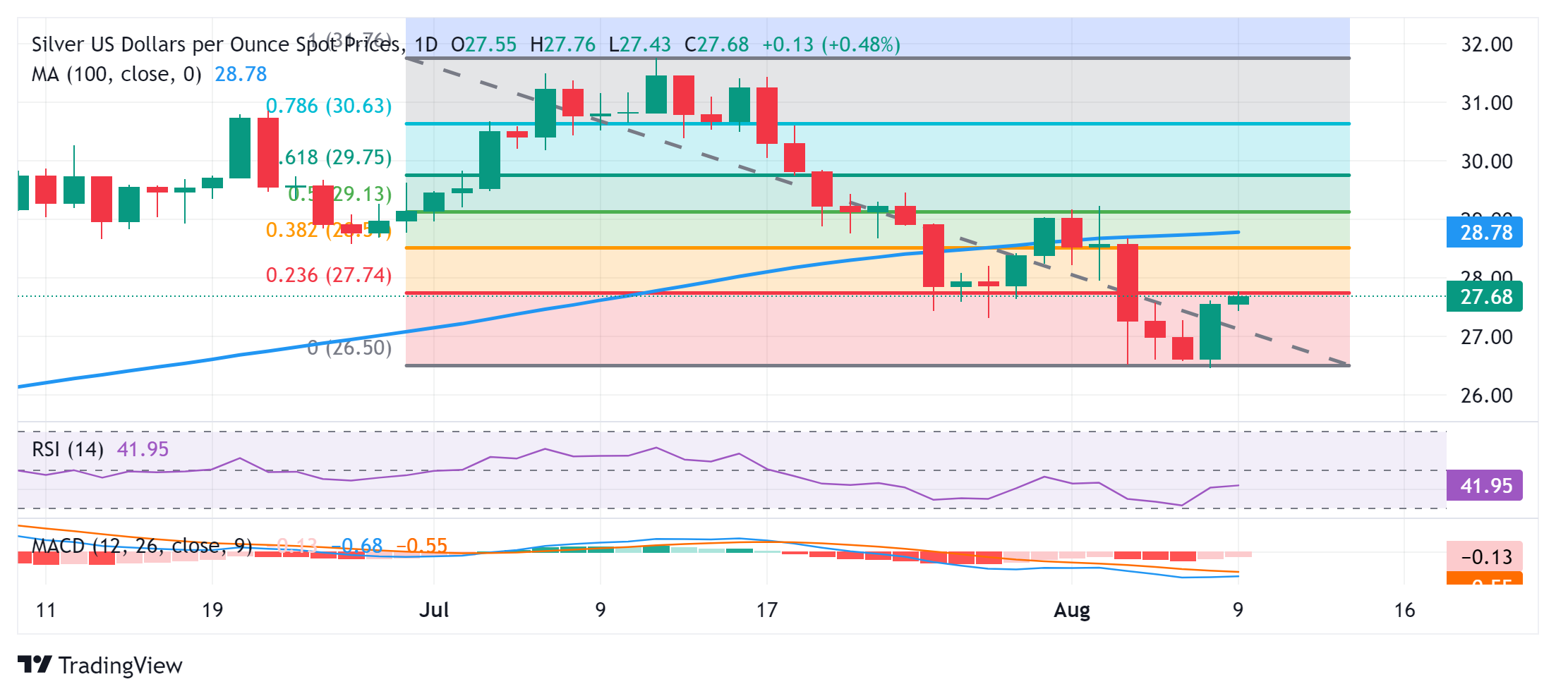 白银价格预测:白银/美元在27.65-70美元附近小幅上涨,跌幅23.6%