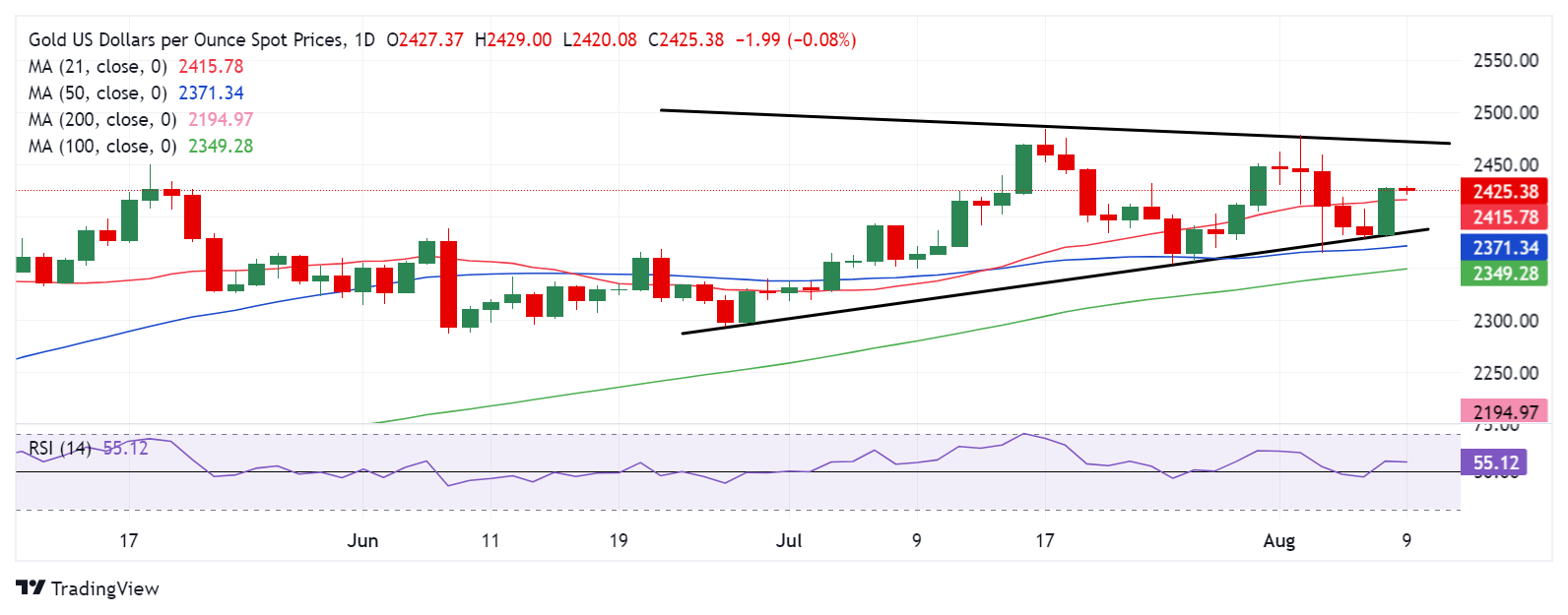 为看涨潜力增加了可信度,黄金买家在每日收盘时重新夺回了21天简单移动平均线(SMA)的支撑位,即2415美元的阻力位。