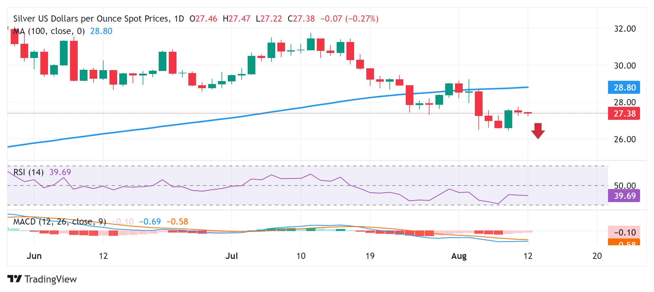 周一,白银(XAG/USD)连续第二天下跌,在亚洲交易时段交易价格低于27.00美元。然而,白色金属仍被限制在过去一周左右的更大范围内,似乎很容易延长过去一个月左右的下跌轨迹。