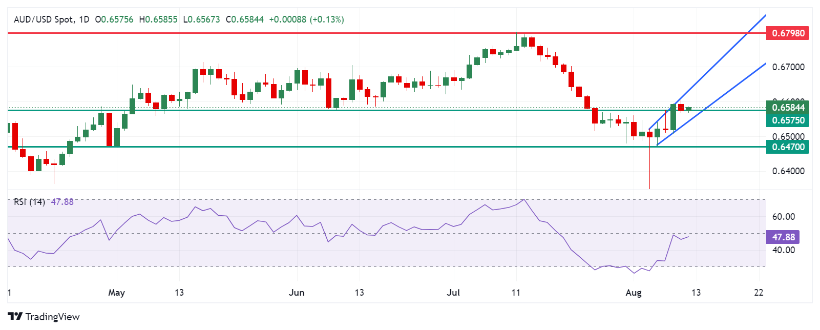 周一,澳元的交易价格约为0.6590。日线图分析显示,澳元/美元对位于上升通道内,表明存在看涨倾向。与此同时,14天相对强弱指数(RSI)正在50点以下盘整。高于这一水平可能表明看涨势头增强。