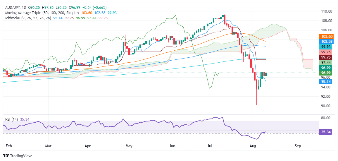 澳元/日元价格预测:由于下跌趋势持续,涨幅将徘徊在97.00以下