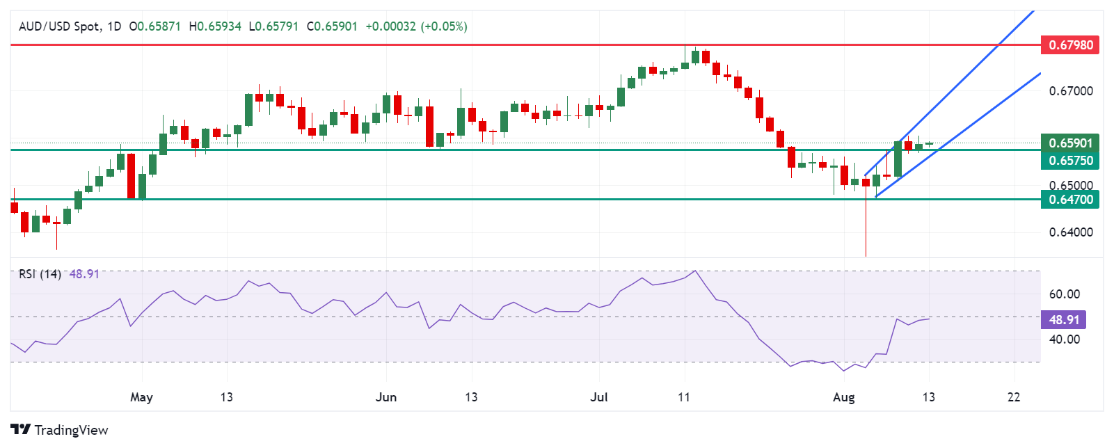 周二,澳元兑美元汇率在0.6590左右。日线图分析显示,澳元/美元在上升通道内企稳,表明存在看涨倾向。然而,14天相对强弱指数(RSI)在50点以下盘整。超过这一阈值可能意味着看涨势头增强。