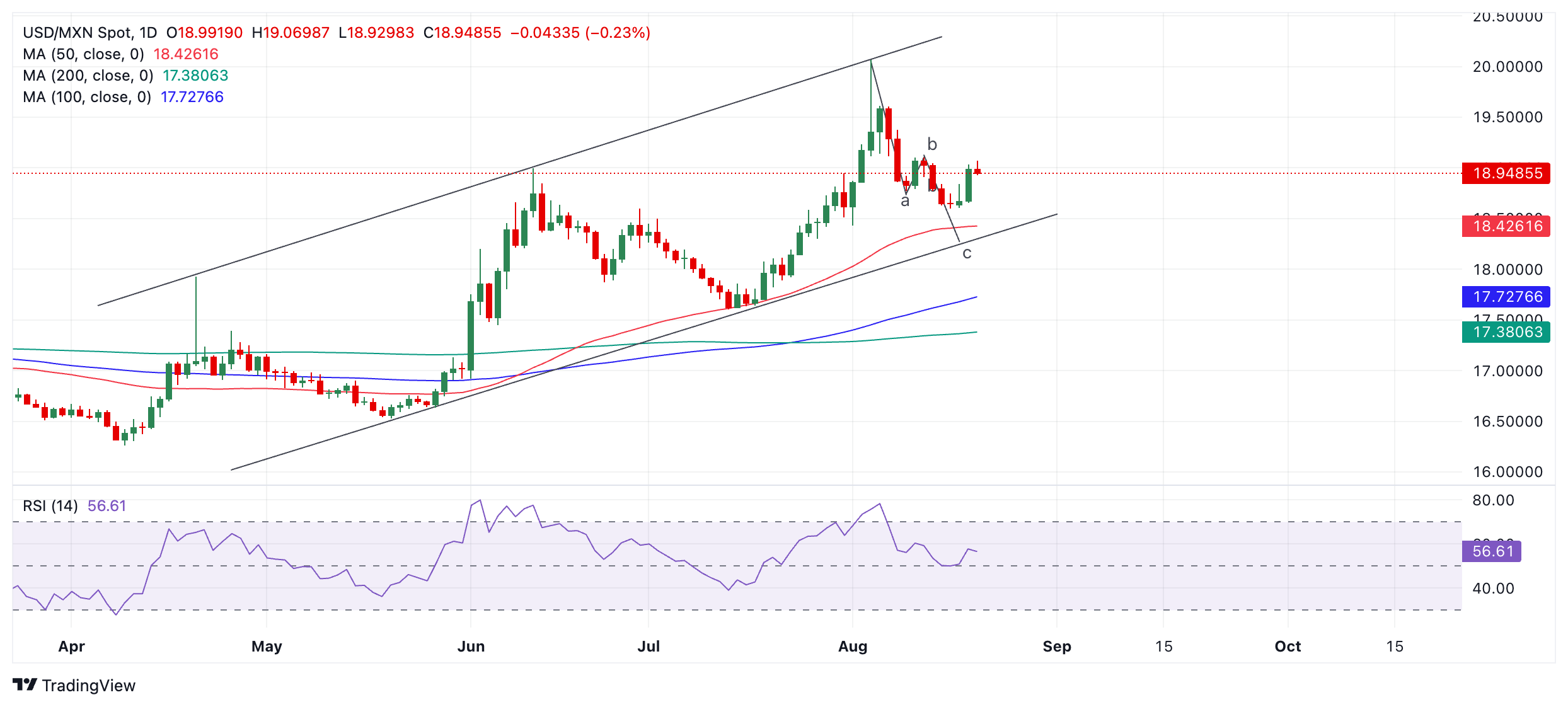 从技术上讲,美元/墨西哥比索可能在其上涨通道内开始新的上涨。