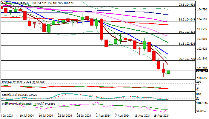 102.00区域的坚实阻力位(8月5日的前低点101.94,下跌10DMA至102.08)理想情况下应能限制并提供更好的卖出机会(基于美联储鲍威尔的预期鸽派言论),以推动目标达到102.29/18(12月28日的低点/200WMA)和心理100.00支撑。