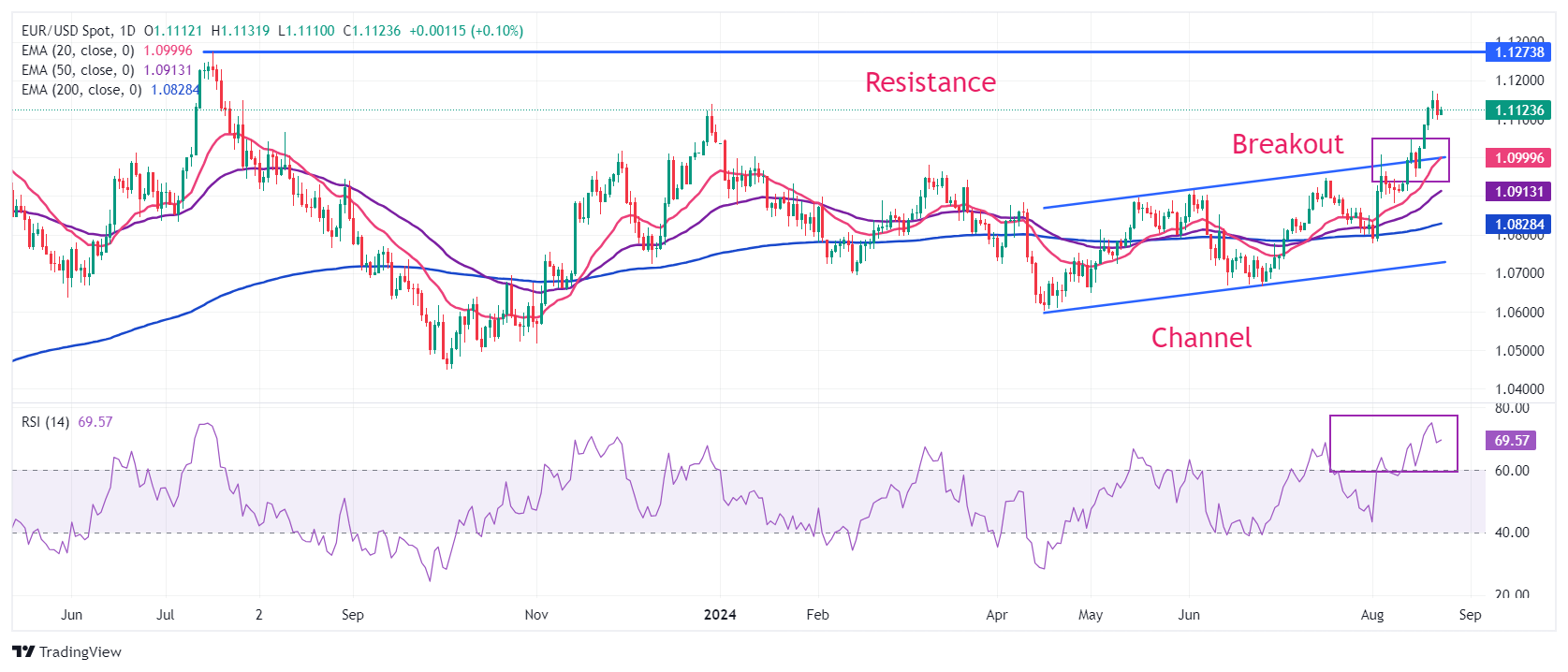 欧元/美元在周五的欧洲时段温和回升至1.1120附近,此前周四从1.1174的年初至今新高进行了调整。在美联储主席杰罗姆·鲍威尔在杰克逊霍尔研讨会上发表演讲之前的谨慎态度下,美元在前一天的一次体面复苏后恢复了最近的疲软,主要货币对小幅走高。
