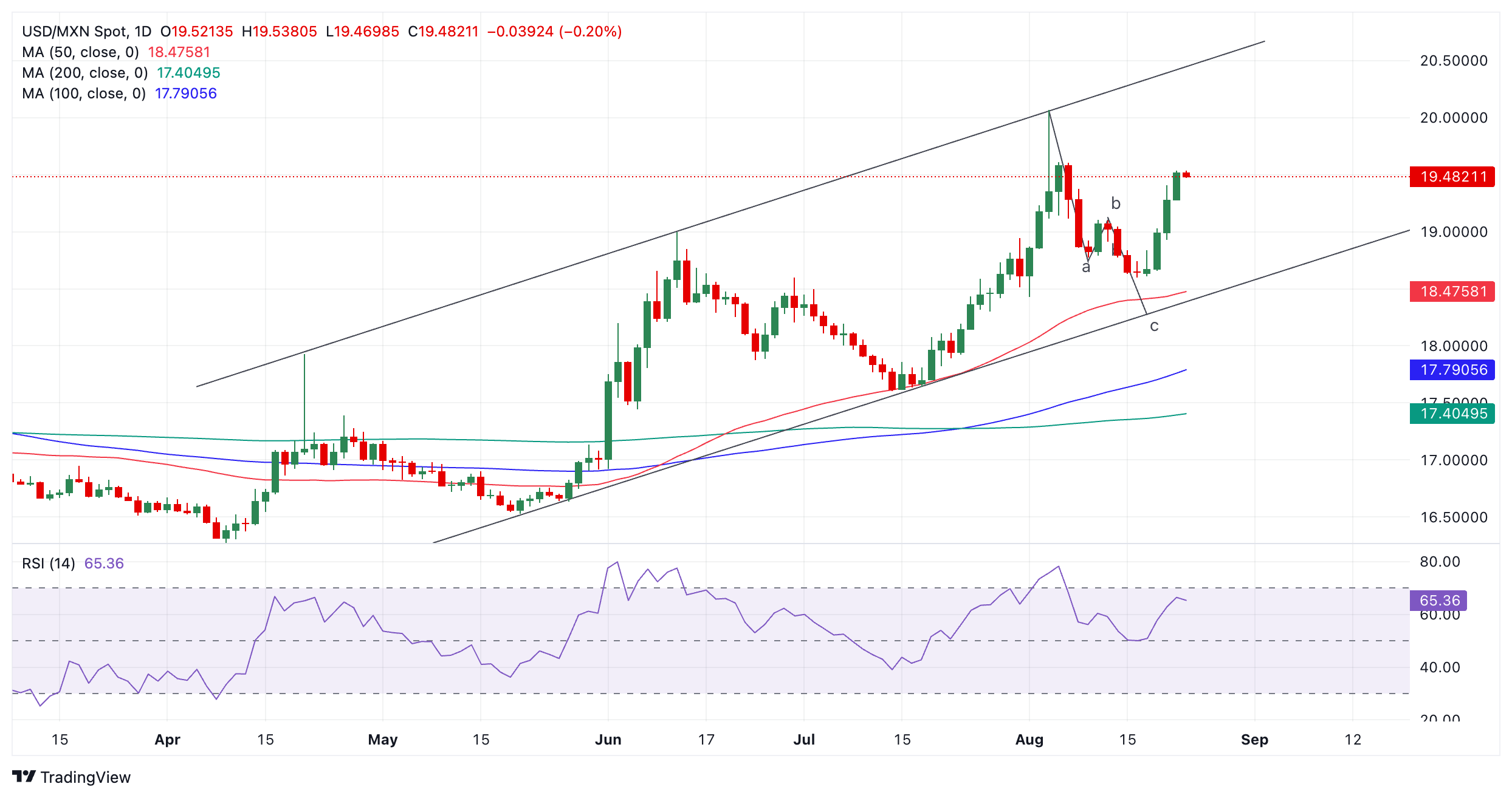 美元/墨西哥比索价格分析:从技术上讲,美元/墨西哥比索在上升通道内延续其上升趋势