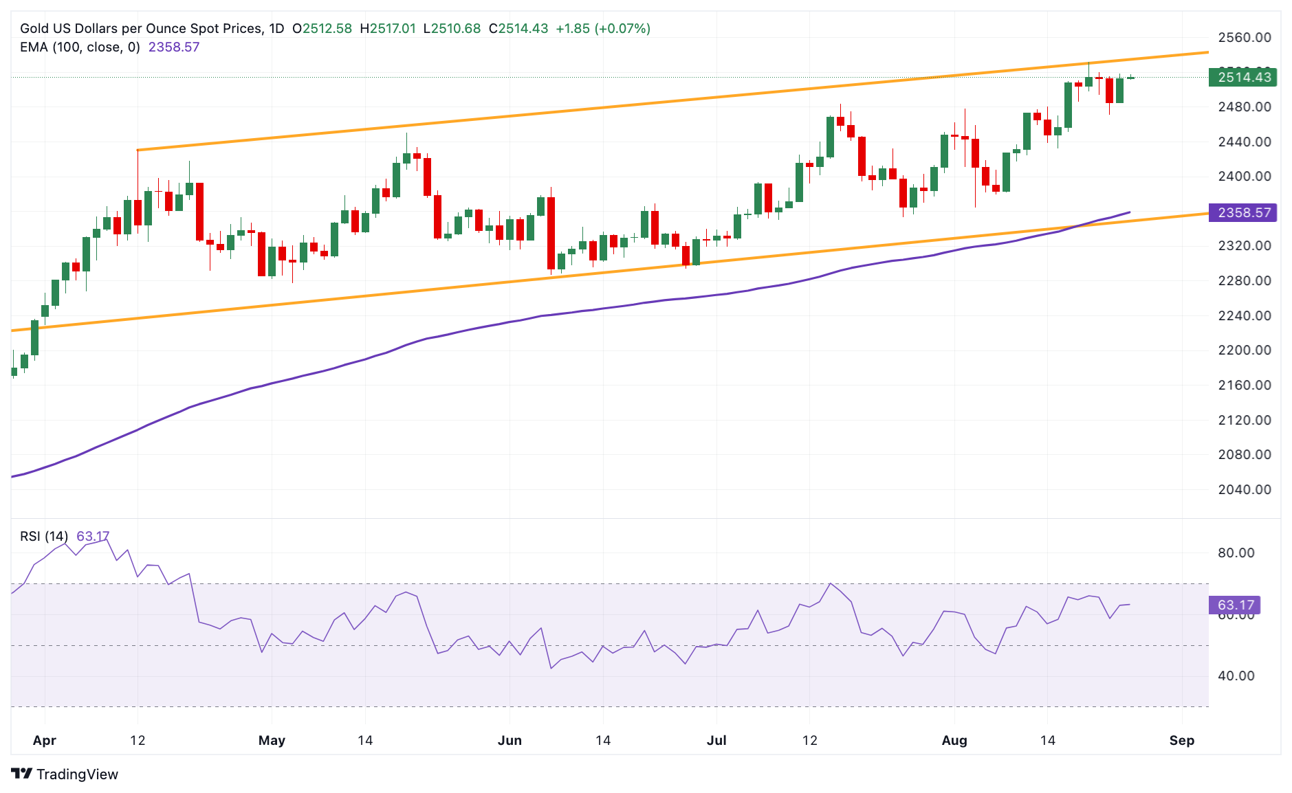 周一,金价(XAU/USD)在2500美元的心理支撑附近有轻微的负偏。由于对美联储(Fed)将于9月开始降低借贷成本的预期不断上升,贵金属的下行空间可能有限。较低的利率通常对黄金有利,因为它降低了持有无息资产的机会成本。