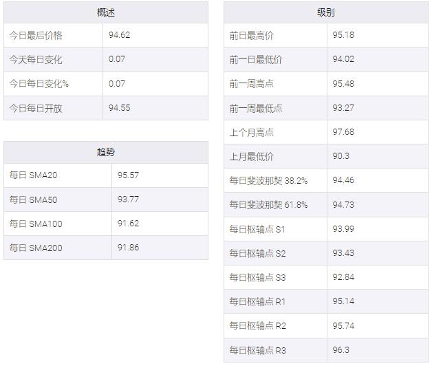 关键阻力位在95.00附近;94.00区域是关键支撑位。