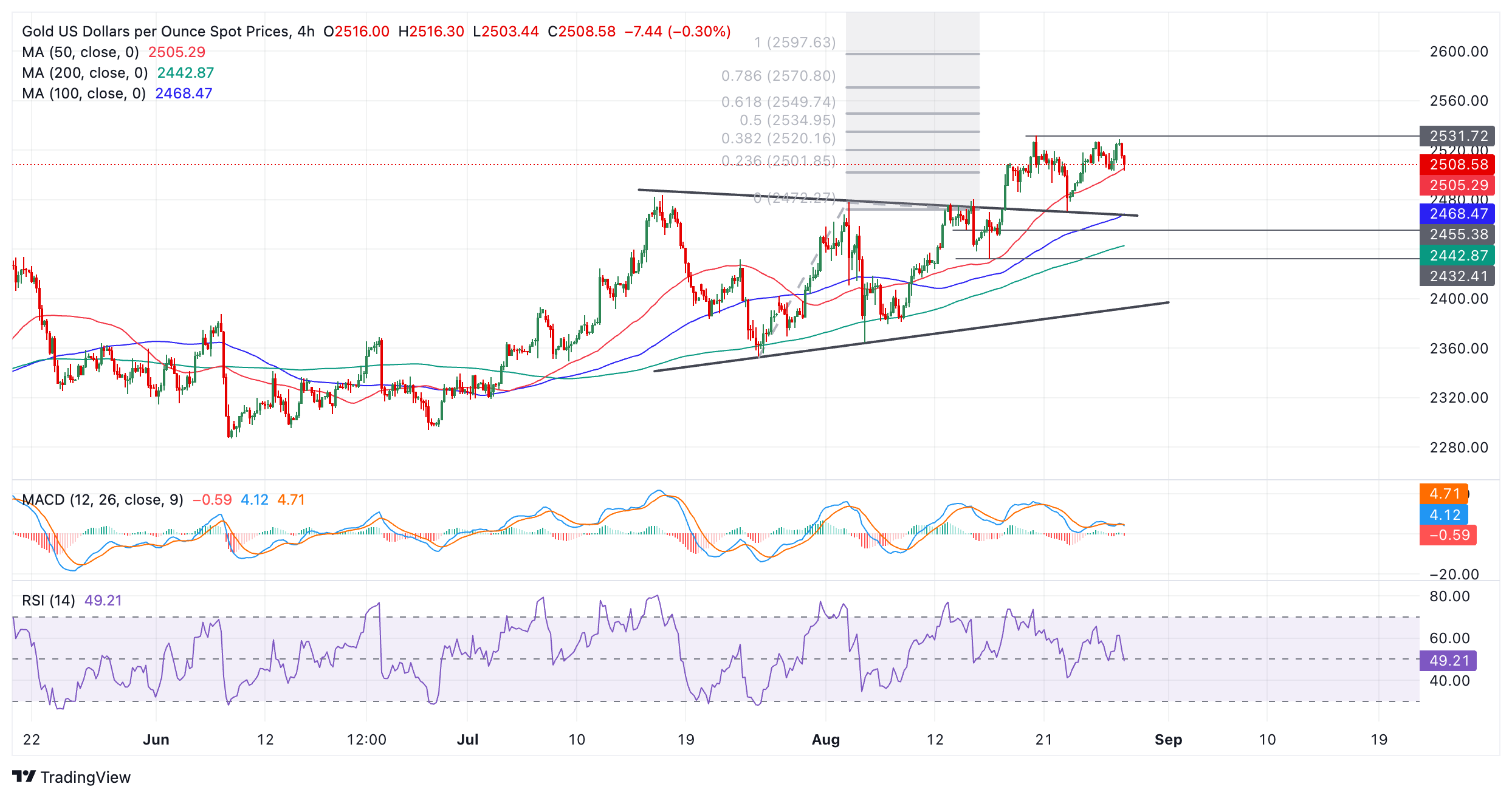 黄金(XAU/USD)在重新测试2530美元的水平后回落。总体而言,它仍处于高于旧区间的盘整范围内。尽管最近有所停顿,但黄金仍处于短期上涨趋势,鉴于“趋势是你的朋友”,黄金更倾向于多头而非空头。
