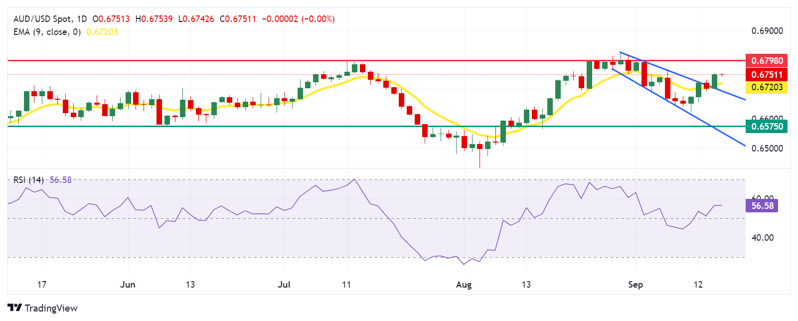 技术分析:澳元升至0.6750;下一个障碍位于七个月高点