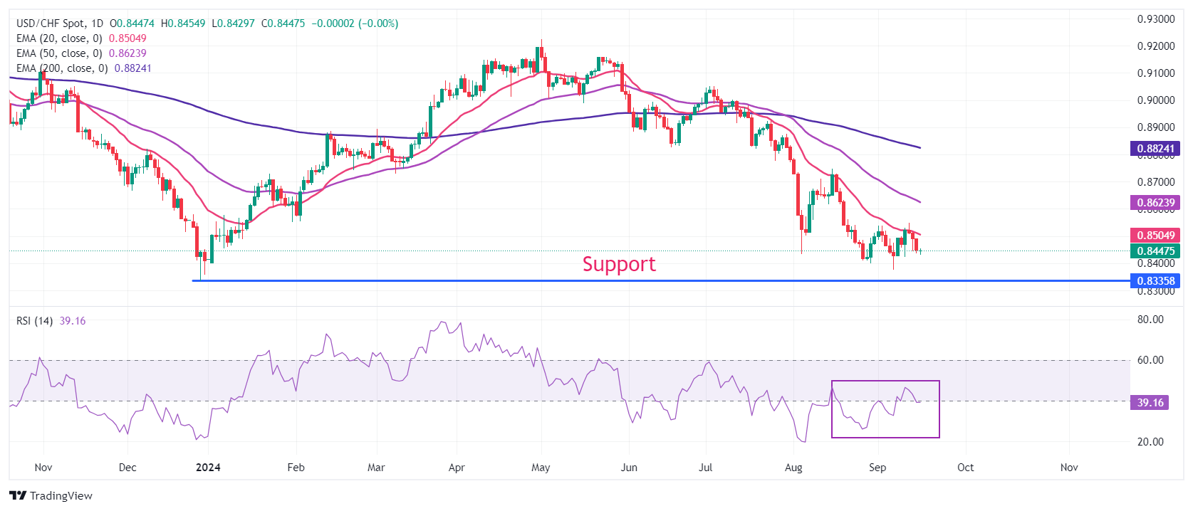 美元/瑞士法郎价格预测:由于美联储大幅降息押注激增,在0.8450附近仍然疲软