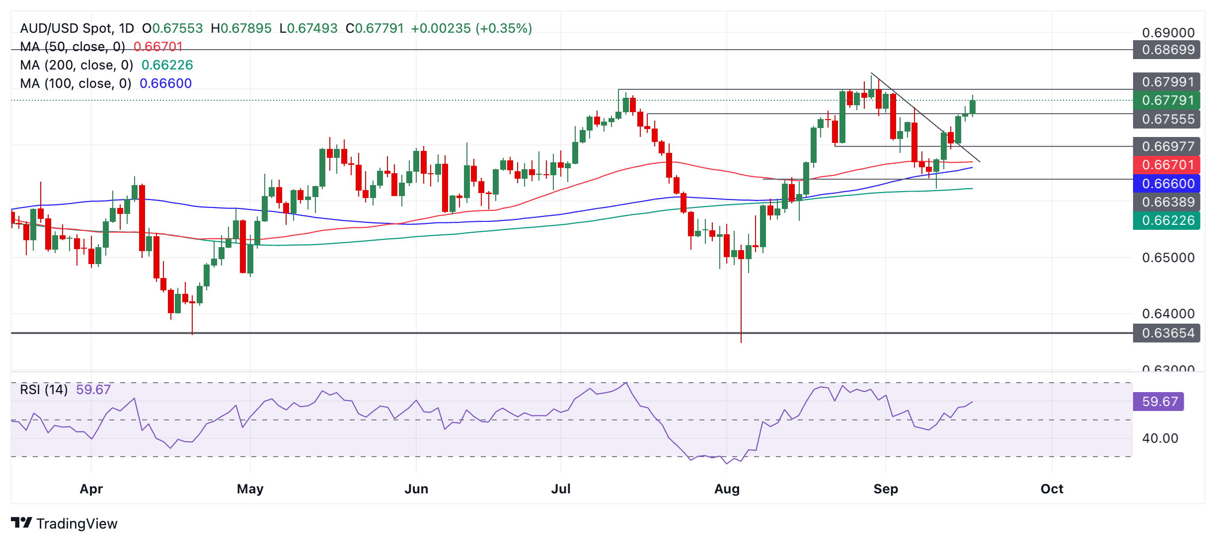 鉴于技术分析的原则是“趋势是你的朋友”,澳元可能会继续走高。它可能与8月29日的0.6824高点相匹配或几乎相匹配。阻力位在0.6799(7月高点)是另一个潜在目标,可能为多头提供稳固的阻力。