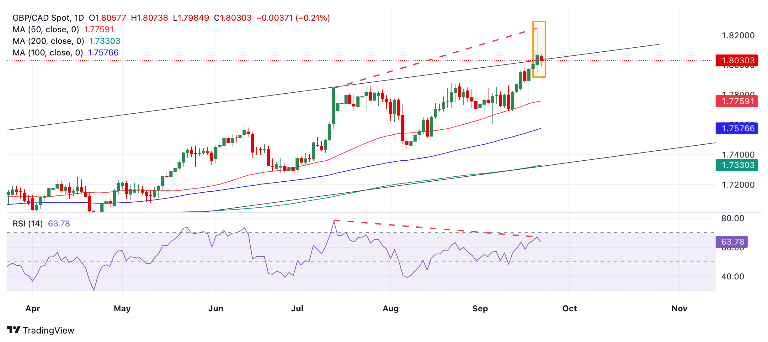英镑/加元价格预测:熊市流星烛台位于上升通道顶部
