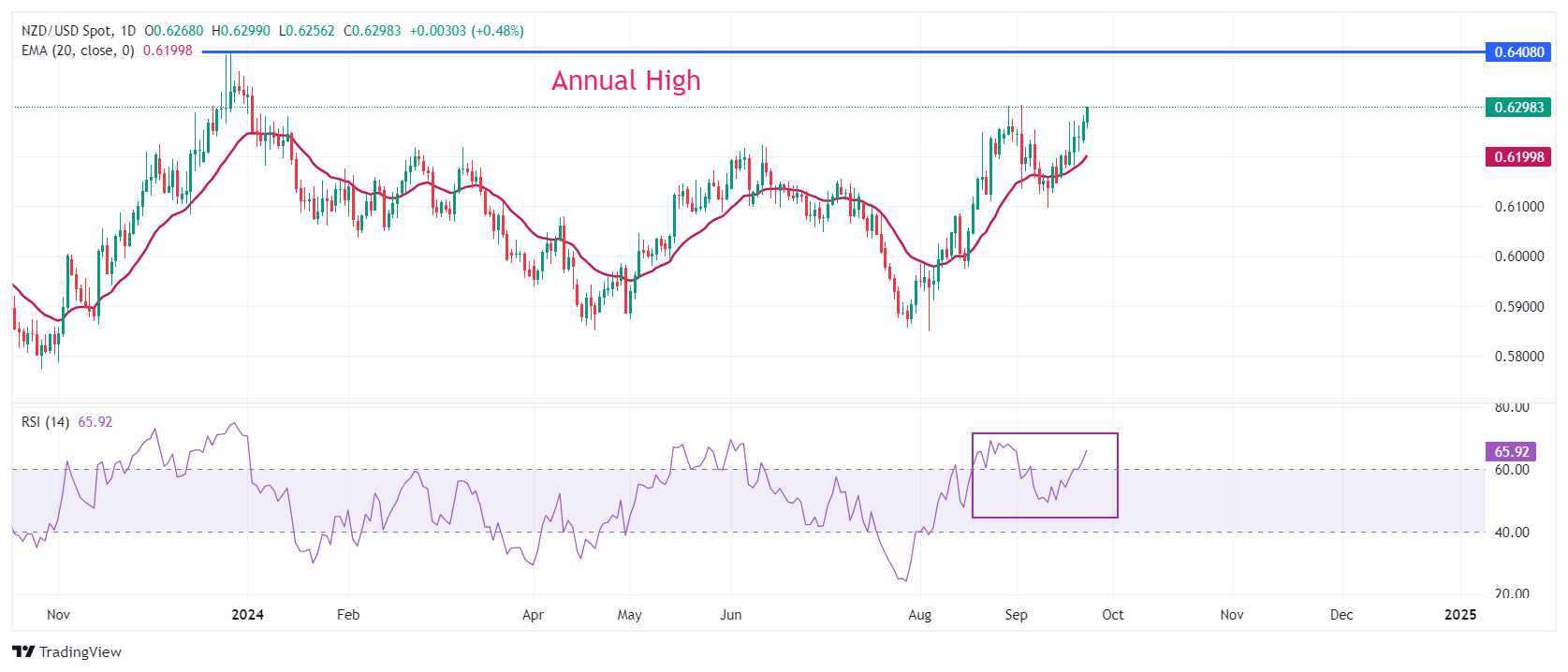 新西兰元/美元价格预测:随着中国推出大规模刺激计划,涨势将扩大至0.6300附近