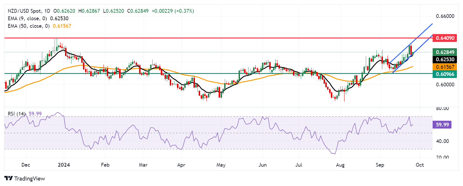 然而,14天相对强弱指数(RSI)仍高于50水平,证实了持续的看涨趋势是完整的。此外,九天指数移动平均线(EMA)位于50天EMA之上,表明NZD/USD对的短期价格趋势更强。