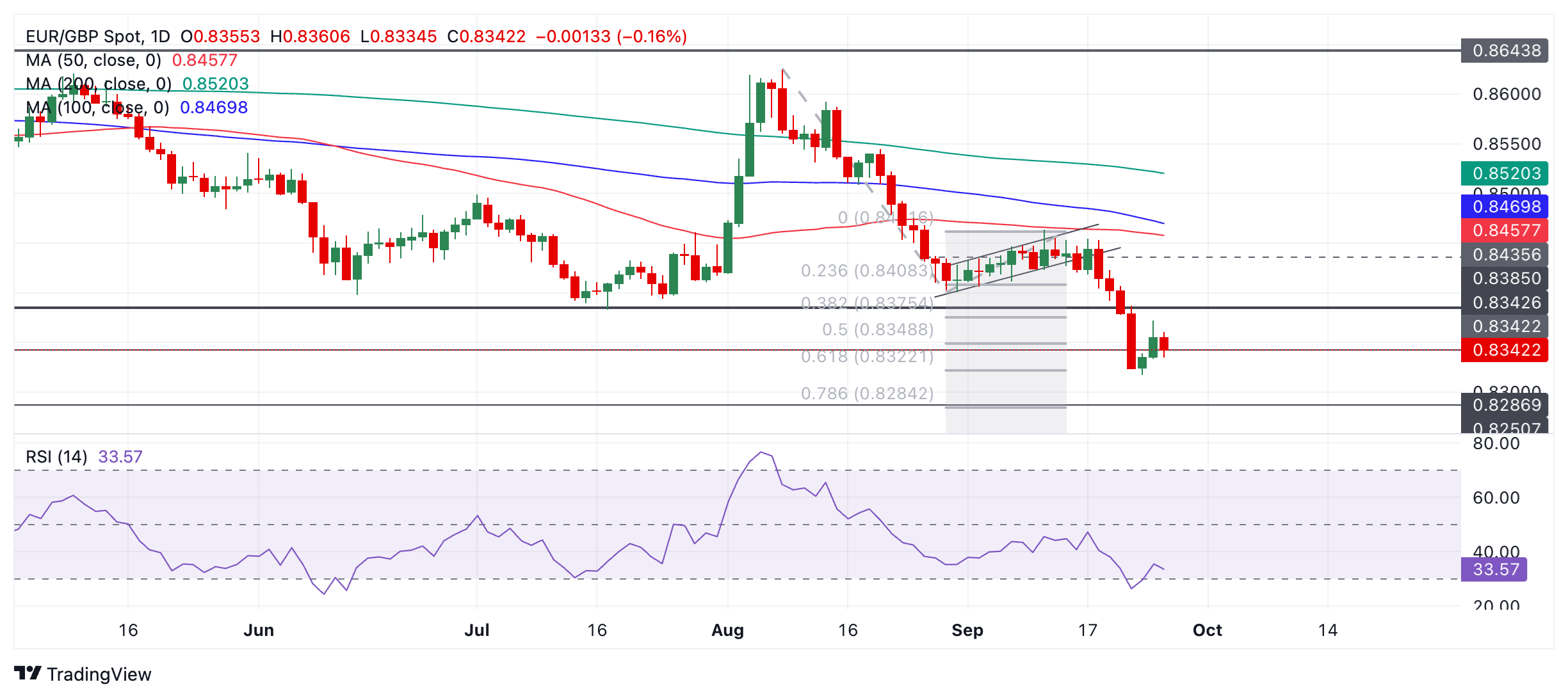 跌破9月24日低点0.8317将再次确认下行趋势将继续朝着2022年8月低点0.8287的下一个目标迈进。