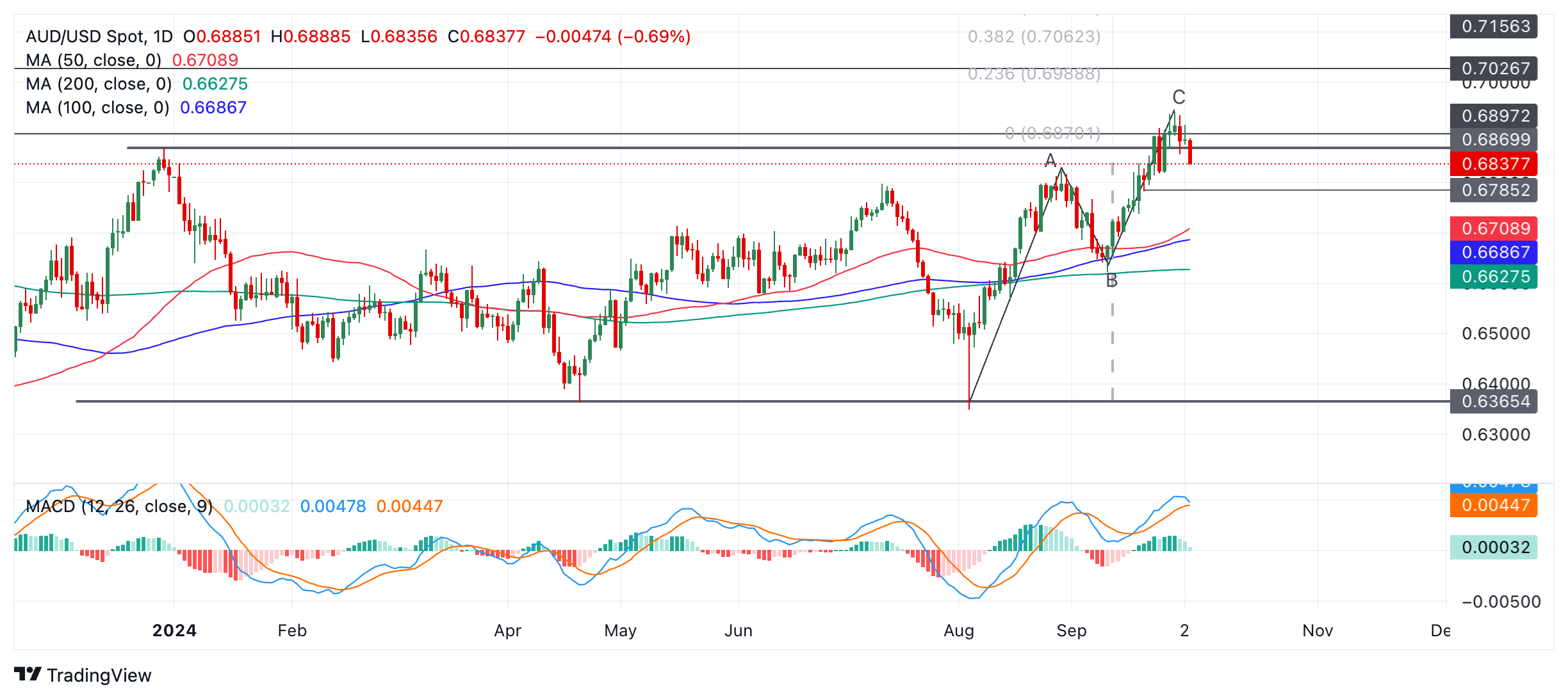 澳元/美元价格预测:回落至区间内,预示可能出现看跌逆转