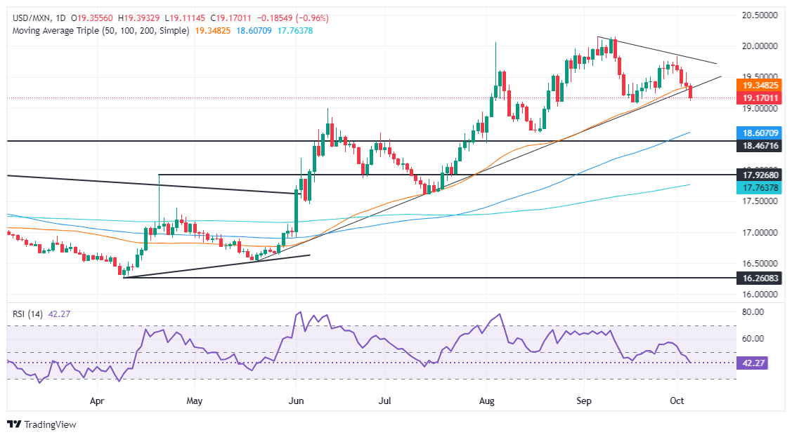 美元/墨西哥比索技术展望:墨西哥比索上涨,美元/墨西哥卢布跌至19.20以下