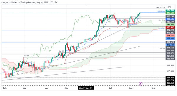 由于市场情绪不一且日元 (JPY) 疲软,英镑/日元延续上涨趋势至连续 7 天,并创下年初至今 (YTD) 新高至 184.77。亚洲时段开始时,英镑/日元交投于 184.62,小幅上涨 0.03%。