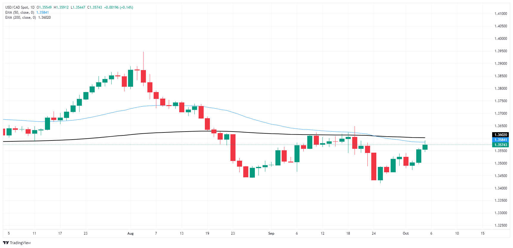 美元/加元对在过去几个交易日一直在走高,该对发现自己处于50天(1.3584)和200天(1.3602)指数移动平均线(EMA)附近的关键时刻。在8月中旬至9月初的持续下跌趋势之后,该货币对显示出稳定的迹象,从1.3450的水平反弹。
