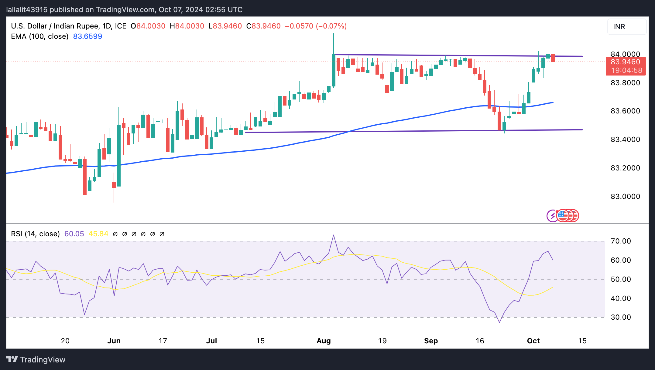 持续交易高于84.00的关键阻力位,代表矩形和心理标记的上限,可能有助于吸引足够的买家,将美元/印度卢比推回到84.15的历史高点,最终达到84.50。