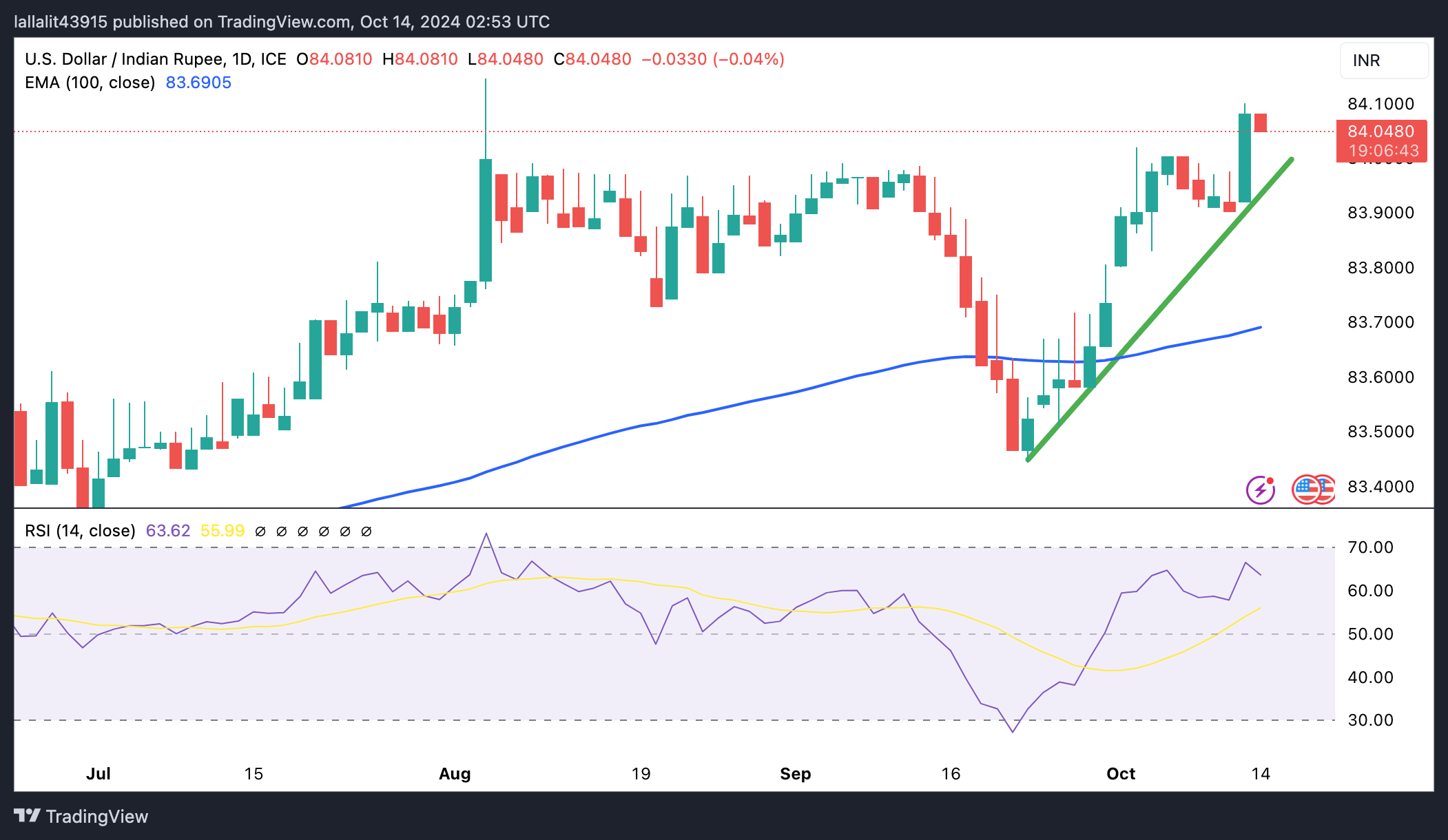 技术分析:美元/印度卢比的总体趋势仍然具有建设性