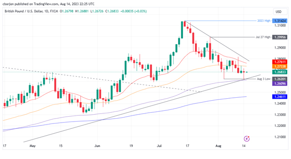 英镑/美元的第一个阻力位是 50 日均线 1.2733,其次是 20 日均线 1.2761。一旦突破这些水平,英镑/美元下一站将是 8 月 10 日高点 1.2819。如果买家将价格推高至这些水平之上,则 7 月 27 日的日高点 1.2995 将很容易争夺。