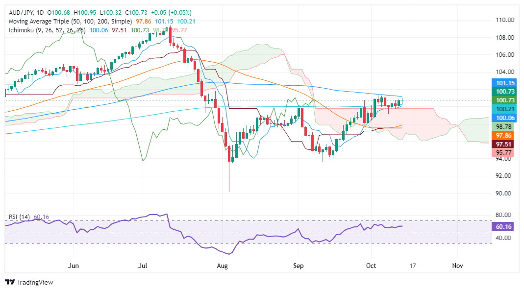 澳元/日元保持中性,但在情绪风险和日元兑美元疲软的支撑下,保持在100.00以上。