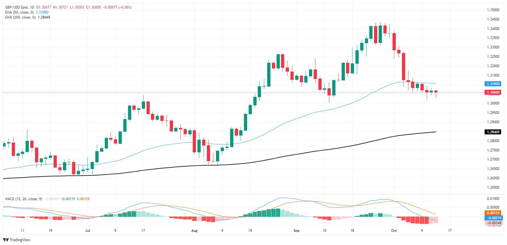 Cable显示,在该货币对跌破1.31050的50天指数移动平均线(EMA)并目前在1.3050附近波动后,日烛台的动量最近发生了变化。英镑/美元在9月下旬达到峰值后出现大幅回落,50天均线开始变平,表明看涨趋势可能减弱。该货币对仍高于200天均线1.28450,提供了一个关键的长期支撑位。