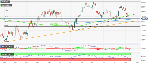 看跌 MACD 信号、持续低于 23.30 美元阻力汇合的交易有利于 XAG/USD 卖家。