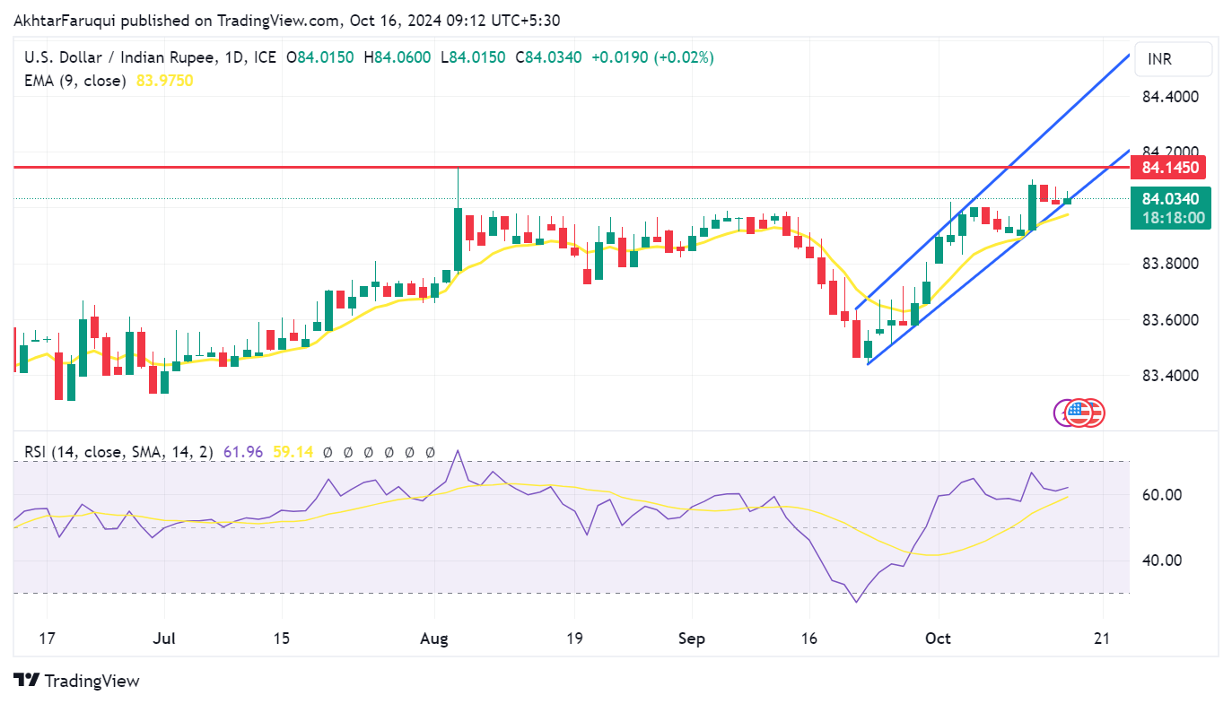 技术分析:美元/印度卢比保持在84.00以上,接近历史高点