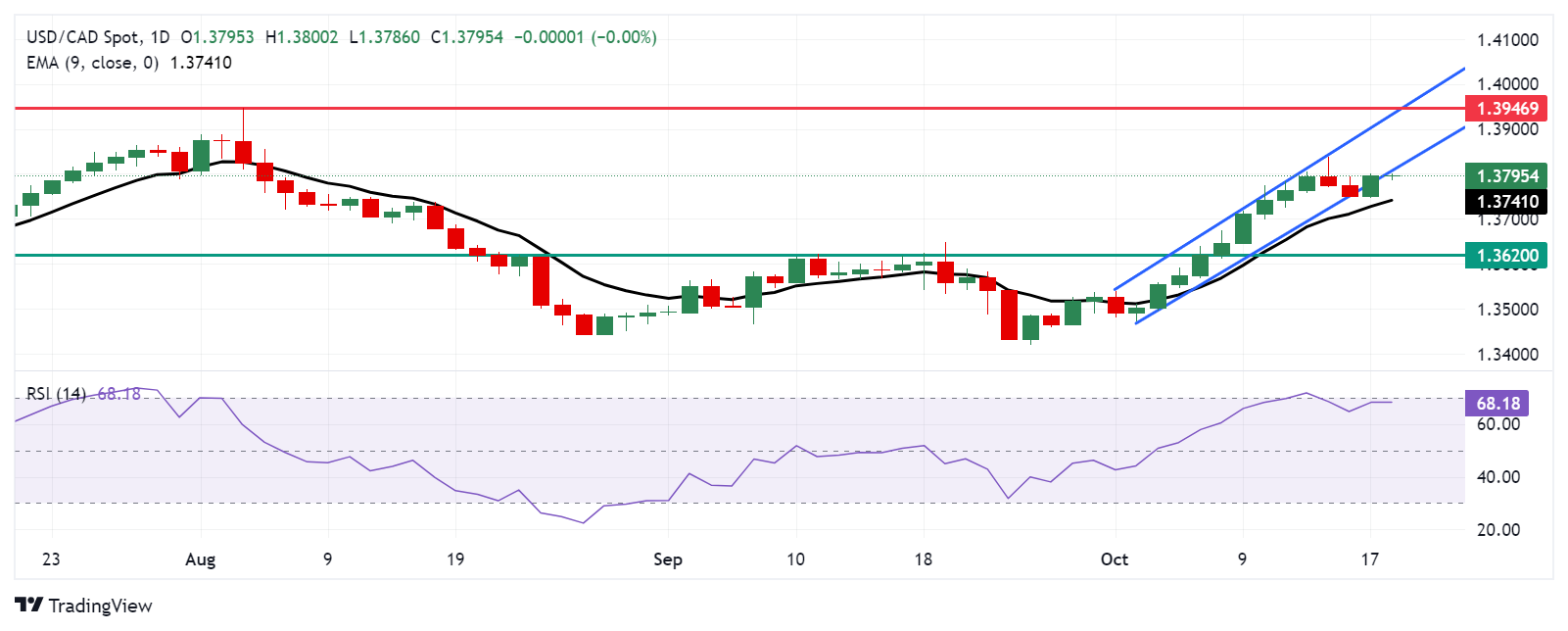在支撑方面,美元/加元对可能会在1.3741的九天指数移动平均线(EMA)附近找到即时支撑。跌破这一水平可能会导致短期内出现看跌趋势,并给该货币对施加压力,使其在1.3620附近的前阻力位附近导航,然后是略低于1.3600的关键心理水平。