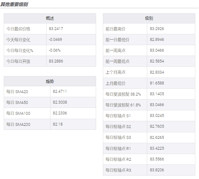 回调在 82.75 上方仍然难以捉摸;多头可能瞄准 84.00 整数。