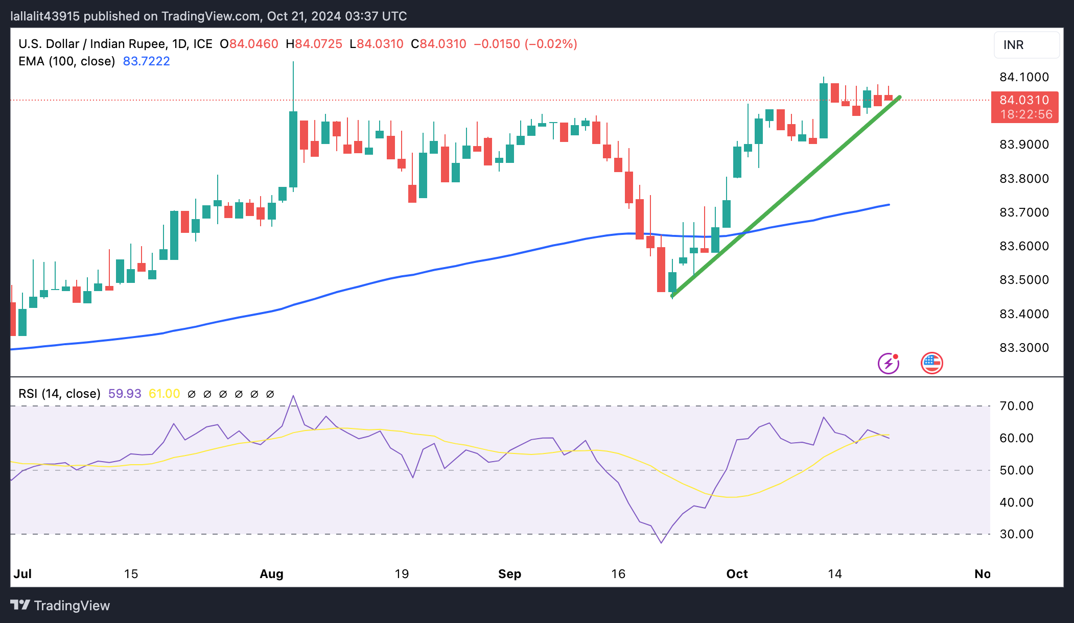 持续高于历史最高点84.15的需求可能会导致看涨,这可能会使美元/印度卢比升至84.50,进而达到85.00的心理水平。