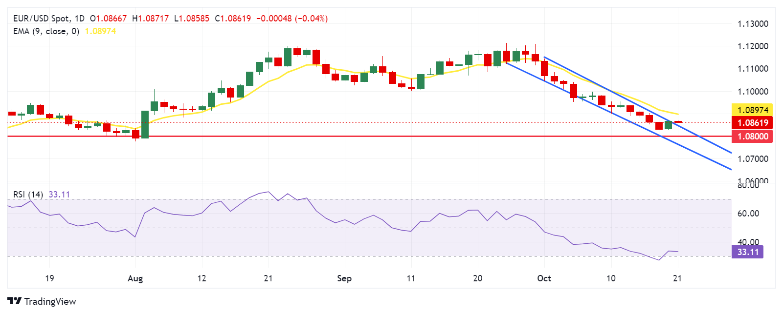 欧元/美元价格分析:交易高于1.0850,下跌通道