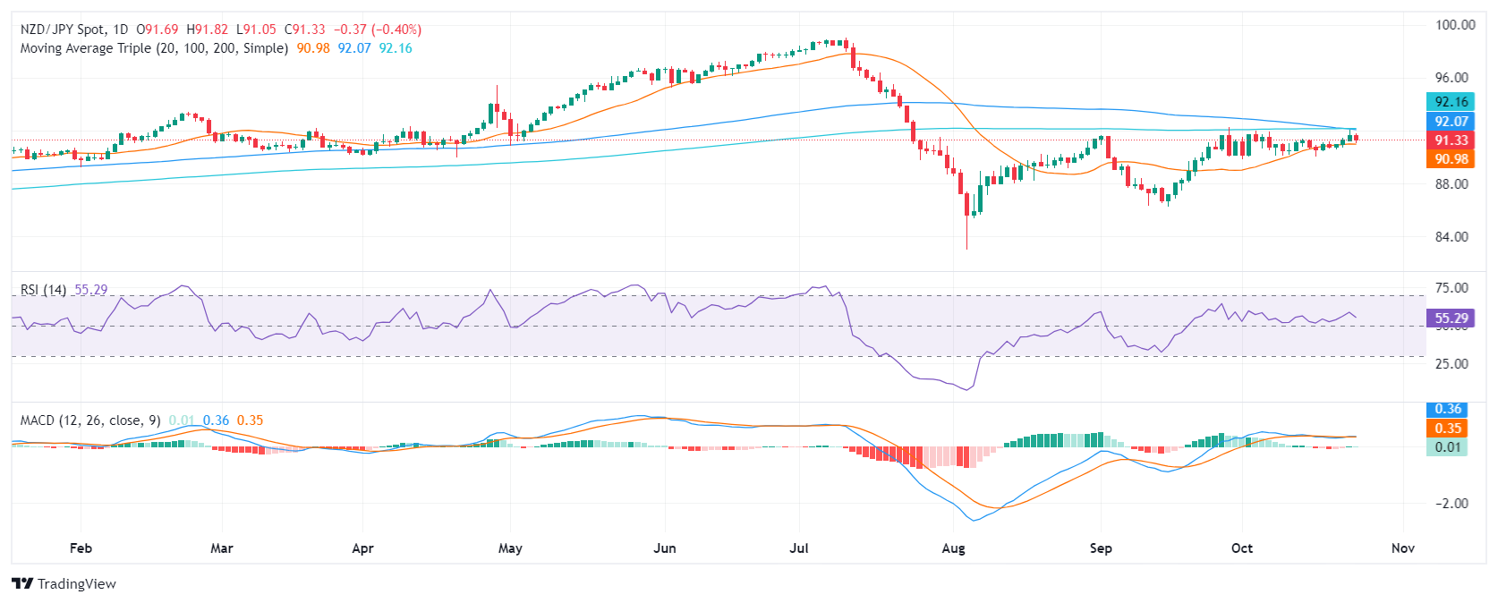 新西兰元/日元对已从最近的高点回落,表明势头可能发生转变。在周四的交易中,该货币对下跌0.40%,至91.30点,并继续进行侧线交易,但有一些牛市疲软的迹象。