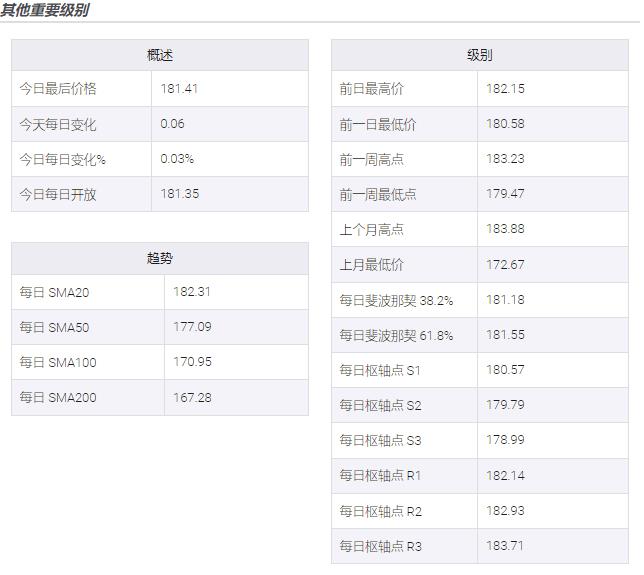 与此同时,英镑/日元向上突破 182.40 关口将瞄准 184.00 阻力位附近的年度顶部。