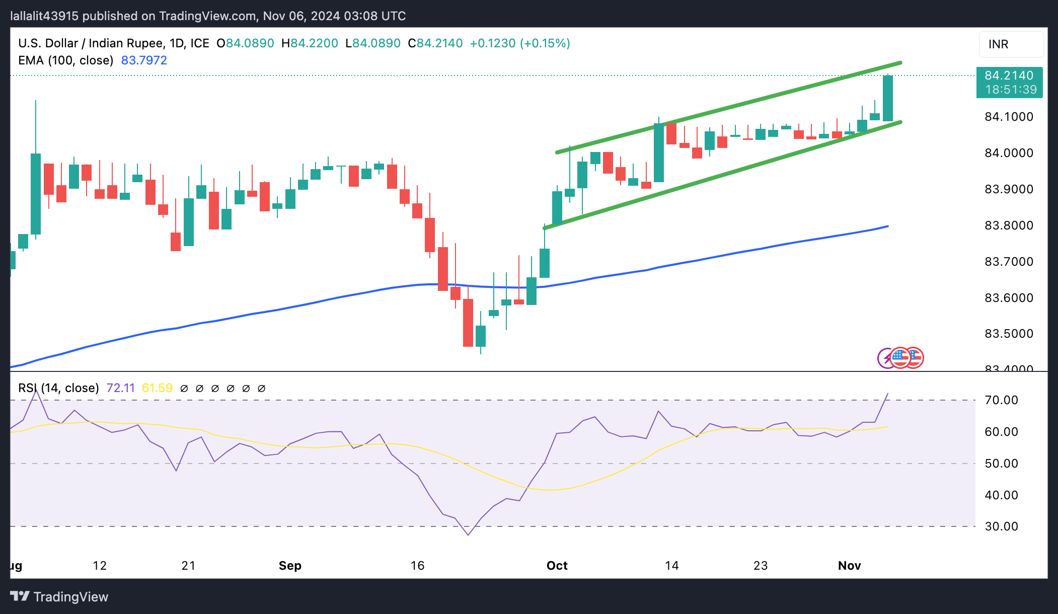 印度卢比(INR)周四失去动力。唐纳德·特朗普在美国总统选举中获胜后,美元(USD)的反弹和债券收益率的上升支持了这一货币对。市场参与者预计印度卢比周四将在区间内交易,因为印度储备银行(RBI)预计将通过出售美元来干预市场,以避免过度波动。