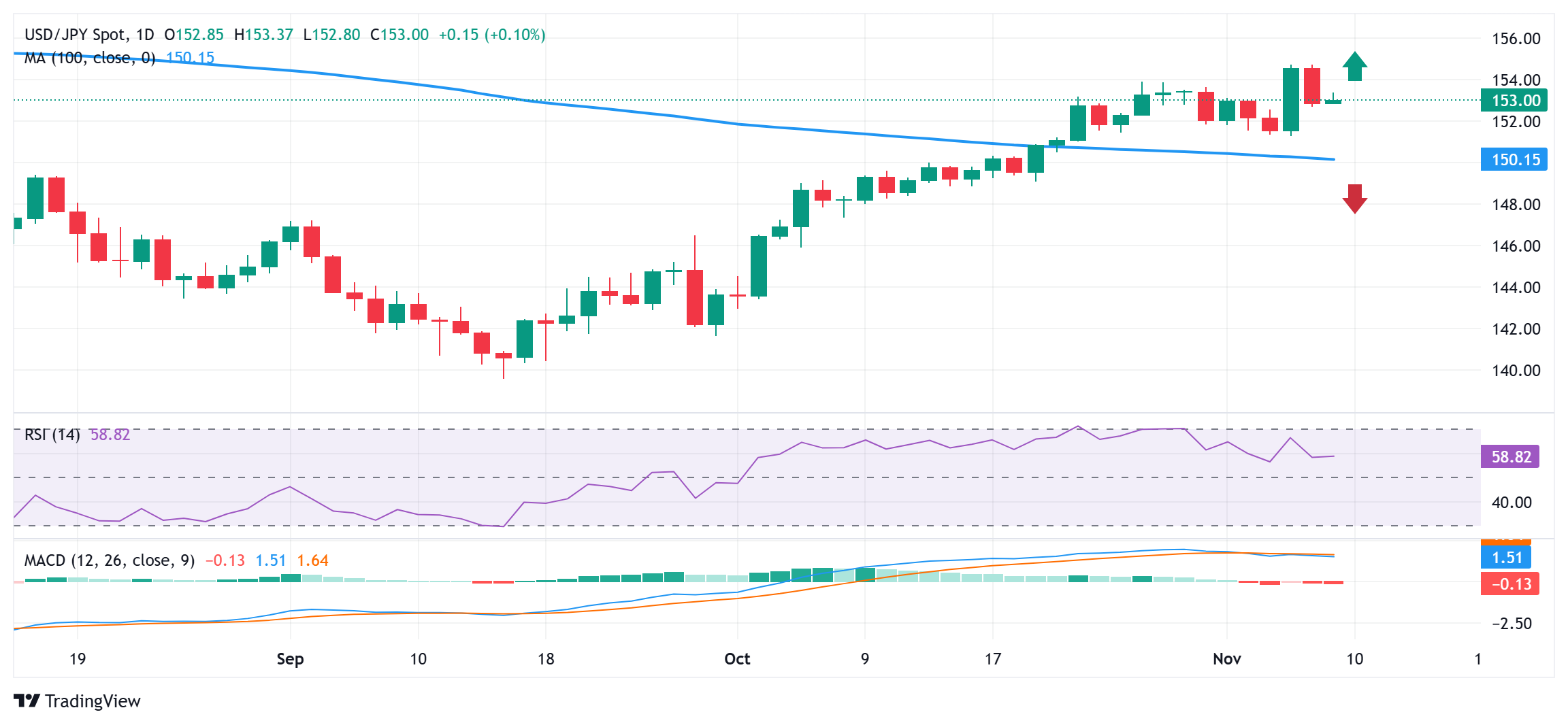 从技术角度来看,隔夜下跌停滞在152.70-152.65水平支撑附近。上述区域现在可能成为一个关键点,低于该点,美元/日元货币对可能会加速向152.00大关的修正性下跌,进而达到151.70-151.65附近的100天简单移动平均线(SMA)。一些后续抛售将表明,最近从9月份月度摆动低点的强劲上涨已经失去动力,并为更大的损失铺平了道路。
