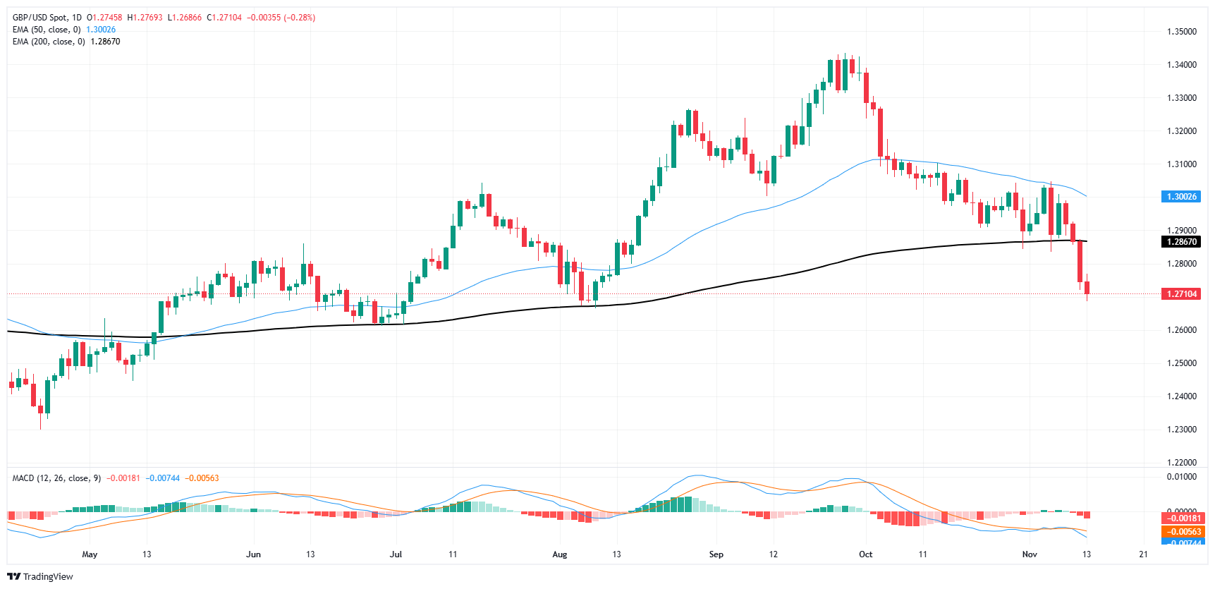 图表底部的MACD指标反映了看跌势头的加剧,MACD线在负区域进一步偏离信号线以下。这种看跌的交叉,伴随着直方图条的下降,突显了英镑/美元的疲软,并暗示了下跌趋势的潜在延伸。MACD没有出现任何看涨分歧,这表明买入兴趣有限,如果没有实质性的催化剂,该货币对可能难以重新获得积极势头。交易员可能会将MACD和抛售压力的任何潜在下降视为趋势逆转的初步迹象,尽管目前缺乏此类信号。