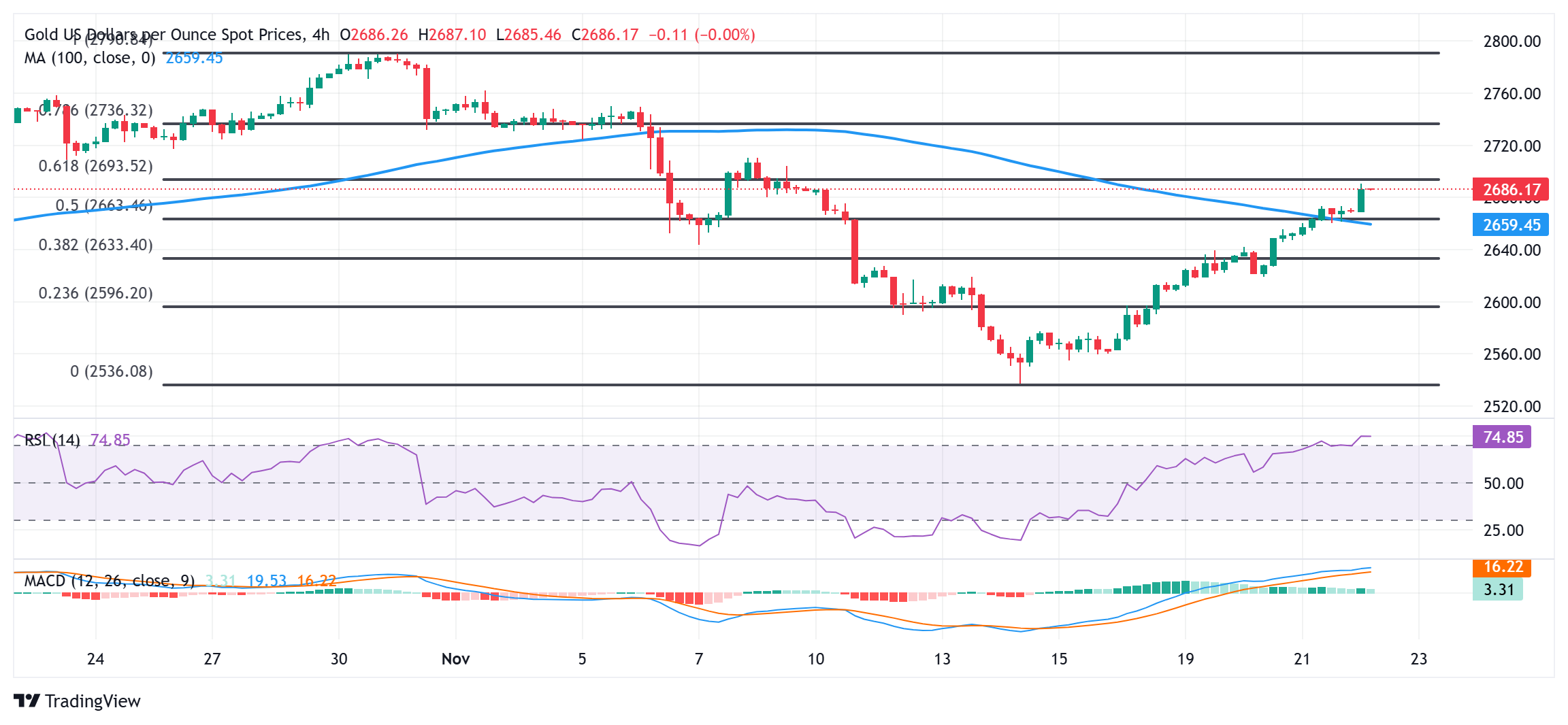 周五,金价(XAU/USD)在欧洲市场上半月触及两周新高,看涨者现在希望进一步突破2700美元大关。这标志着连续第五天出现积极走势,并受到俄罗斯-乌克兰战争加剧导致的持续地缘政治紧张局势下全球避险的推动。此外,对美国当选总统唐纳德·特朗普的扩张性政策可能重新引发通胀压力的预期进一步有利于大宗商品作为对冲通胀的吸引力。