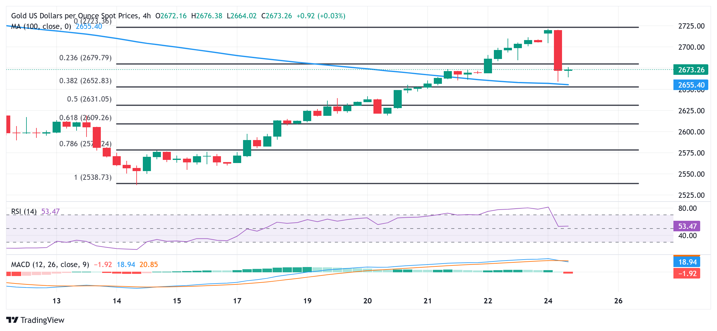 从技术角度来看,盘中大幅下跌将金价拉低至最近从11月14日触及的两个月低点强劲复苏的23.6%斐波那契回撤水平以下。然而,随后的下跌在2660-2658美元附近的100期简单移动平均线(SMA)附近停滞。与此同时,日线图上的振荡指标已从负值区域恢复,并在4小时图上保持在正值区域。这使得看跌交易者谨慎地等待低于100期SMA和38.2%斐波那契的后续抛售。在下新的赌注之前,先将价格维持在2650美元左右。然后,XAU/USD可能会加速下跌至2630-2629美元的区域,即50%的回撤水平,进而跌至2610-2608美元的区域或61.8%的斐波那契。水平。