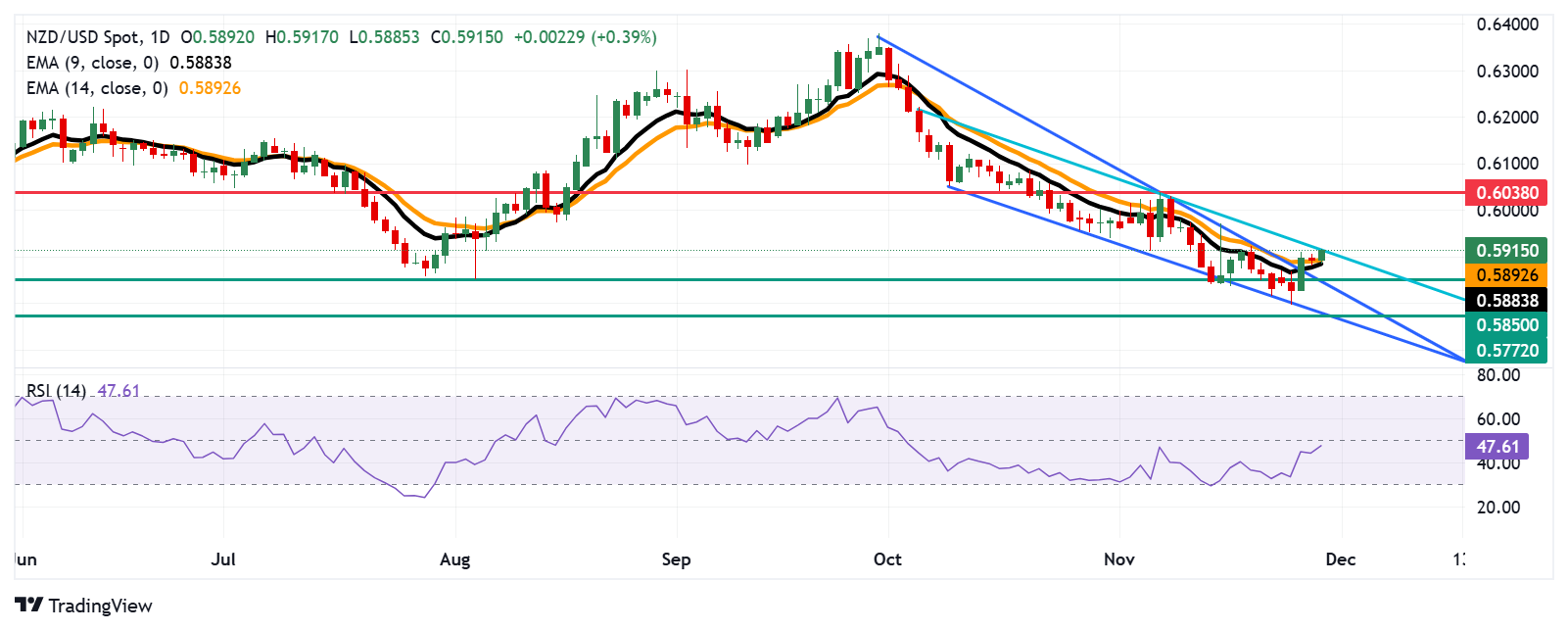 新西兰元/美元价格预测:测试下跌通道的上限高于14天均线0.5900