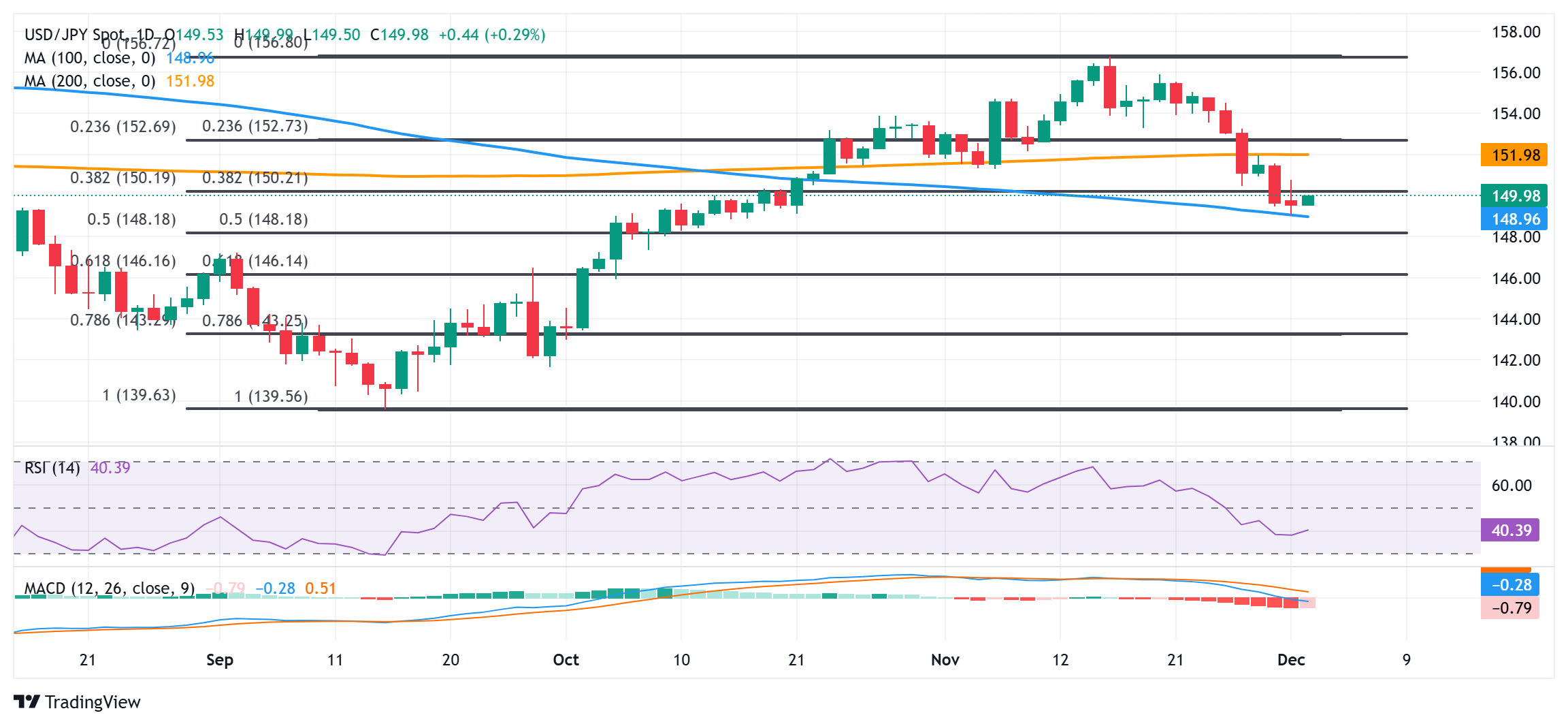 周二,日元(JPY)在亚洲时段延续了其稳定的盘中下跌,再加上美元(USD)的温和走强,使美元/日元对进一步突破150.00的心理关口。然而,对日本央行(BoJ)可能在12月再次加息的猜测可能会阻止日元空头进行激进押注。此外,对美国当选总统唐纳德·特朗普的关税计划、持续的地缘政治风险以及最近美国国债收益率下降的担忧应成为低收益日元的顺风。