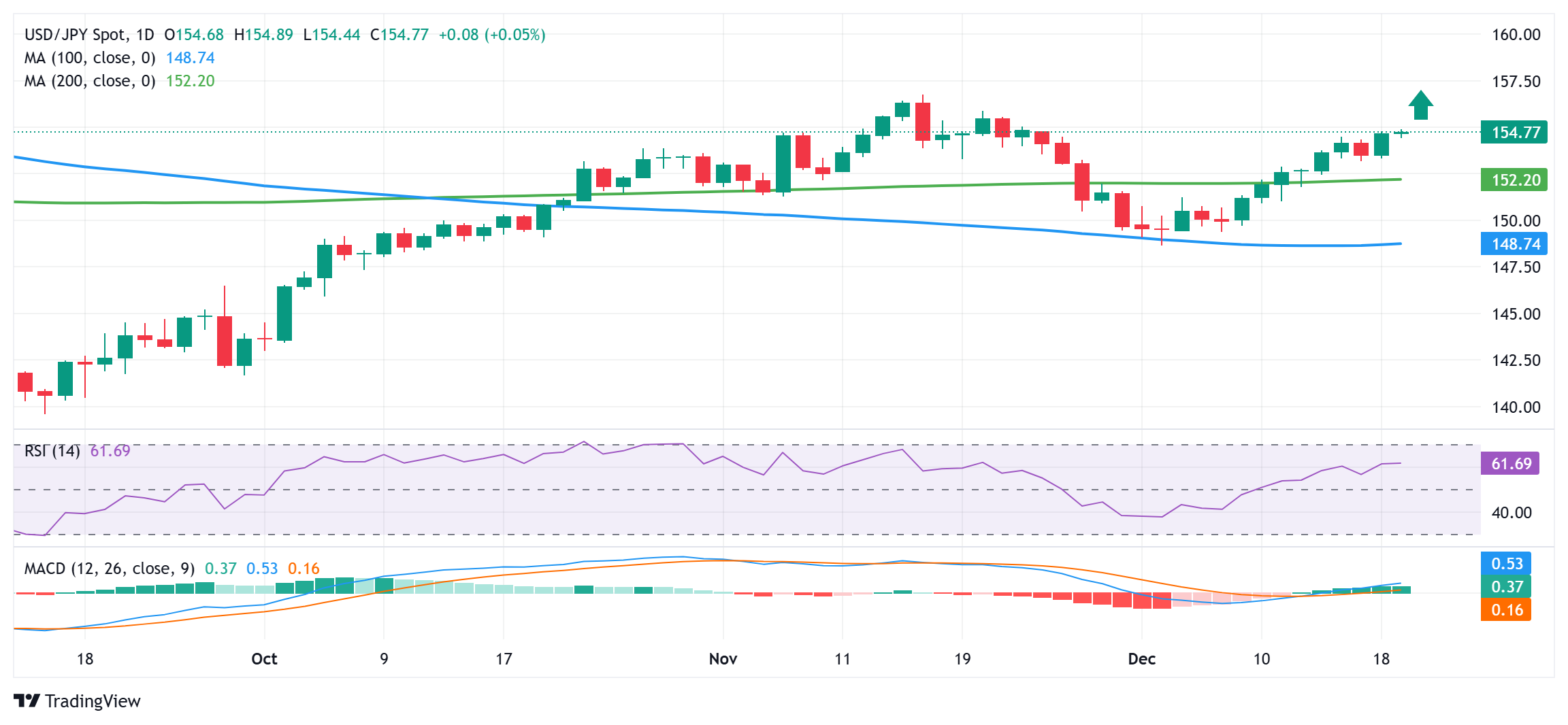 在最近从100天简单移动平均线(SMA)支撑位或月度低点强劲上涨的背景下,随后超过155.00心理关口的强势可能被视为看涨交易者的关键触发因素。此外,日线图上的振荡指标一直在获得正的牵引力,并且仍远离超买区。因此,超过上述手柄的持续走强应使美元/日元突破155.40-155.45的中间障碍,并有望夺回156.00大关。这一势头可能会进一步扩大,以测试11月触及的156.75区域附近的多月高点。